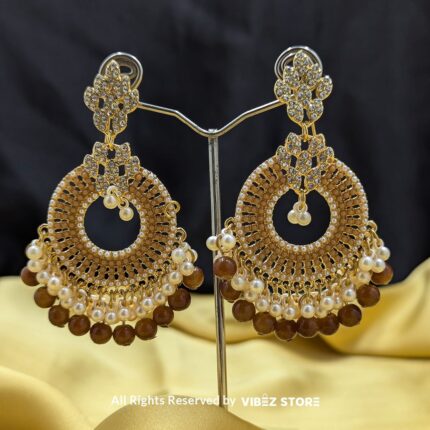 Elegant Hoop Jhumka Earrings with Pearl and Golden Detailing