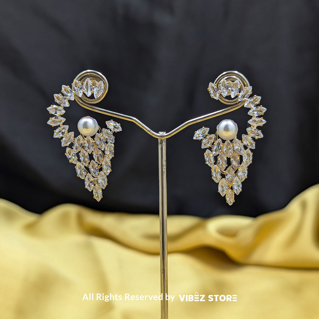 Dazzling earrings featuring cascading crystals and a luminous pearl, perfect for a glamorous touch to any occasion.